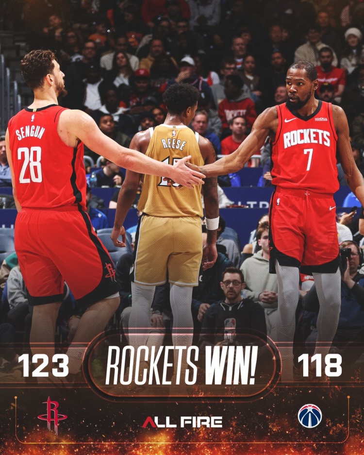 3月3日讯 NBA常规赛,火箭123-118战胜奇才。